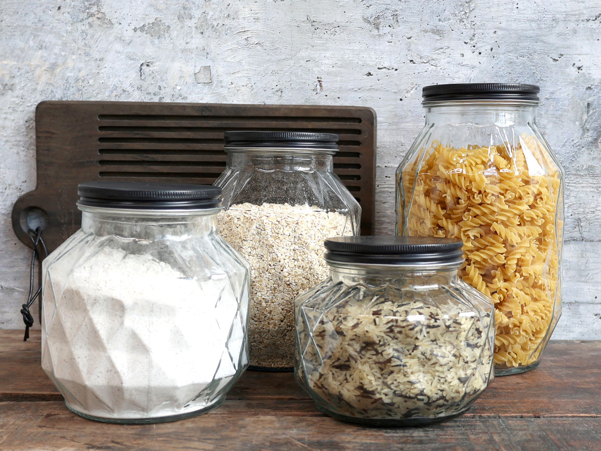 Déclinés en plusieurs tailles, ces bocaux sont idéals pour conserver pâtes, riz, céréales, farine ou graines, tout en participant à une organisation soignée et décorative. Ils trouvent naturellement leur place dans une cuisine contemporaine, industrielle ou minimaliste.