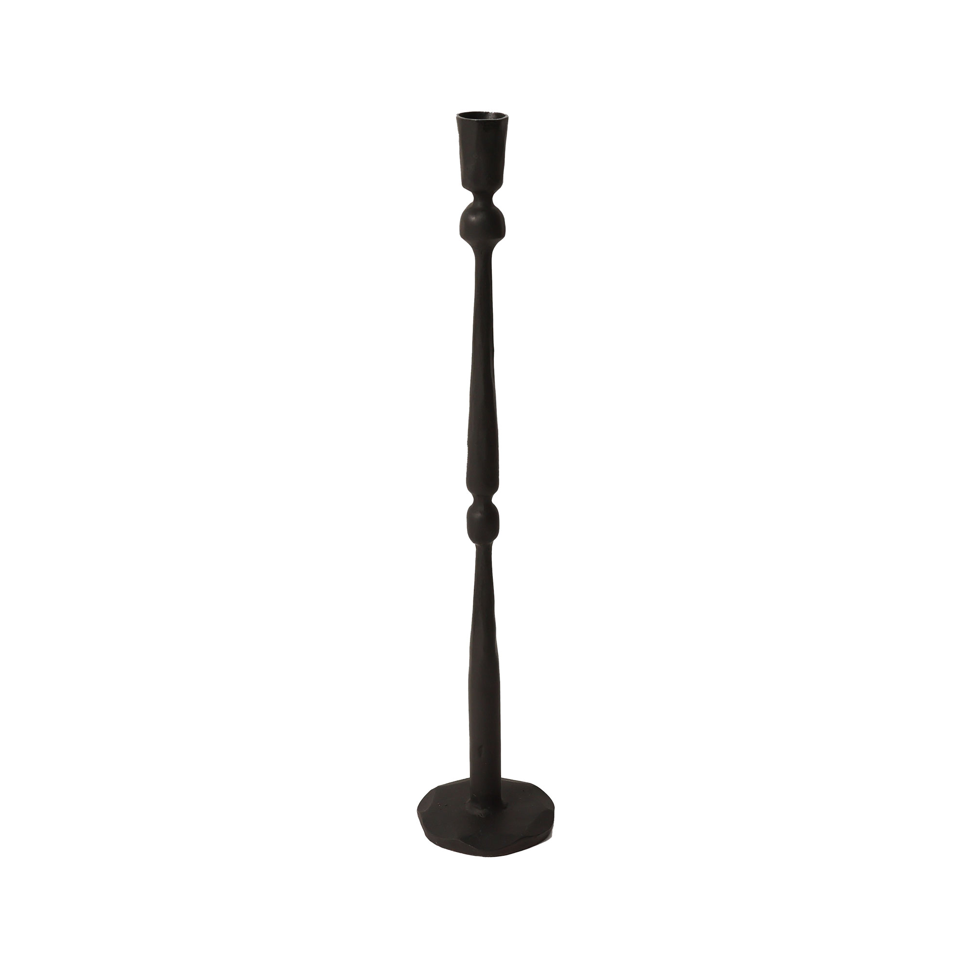 Ce grand bougeoir en métal noir apporte une touche élégante et chaleureuse à votre décoration. Sa silhouette élancée, légèrement irrégulière, évoque le charme du fer forgé travaillé à la main, lui donnant une allure authentique et raffinée. Sa base sculptée et son style minimaliste permettent de sublimer une bougie tout en apportant une note contemporaine et intemporelle à vos tables, consoles ou étagères.