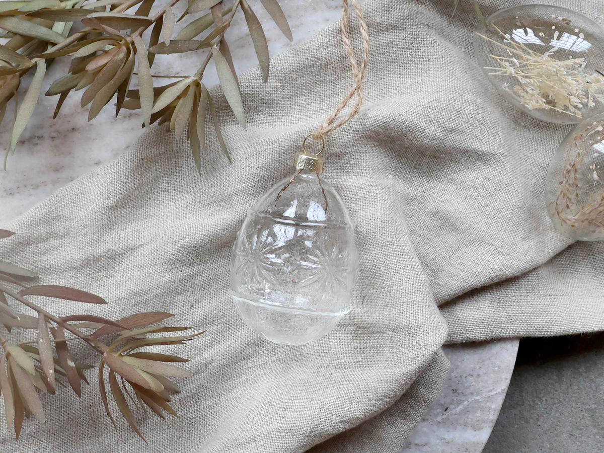 Soufflée dans un verre délicatement travaillé, cette boule de Noël joue avec la lumière et les reflets pour habiller le sapin d’une élégance discrète. Sa transparence légèrement texturée évoque la glace et les décorations d’antan, apportant une touche poétique et intemporelle à votre décoration de fêtes.