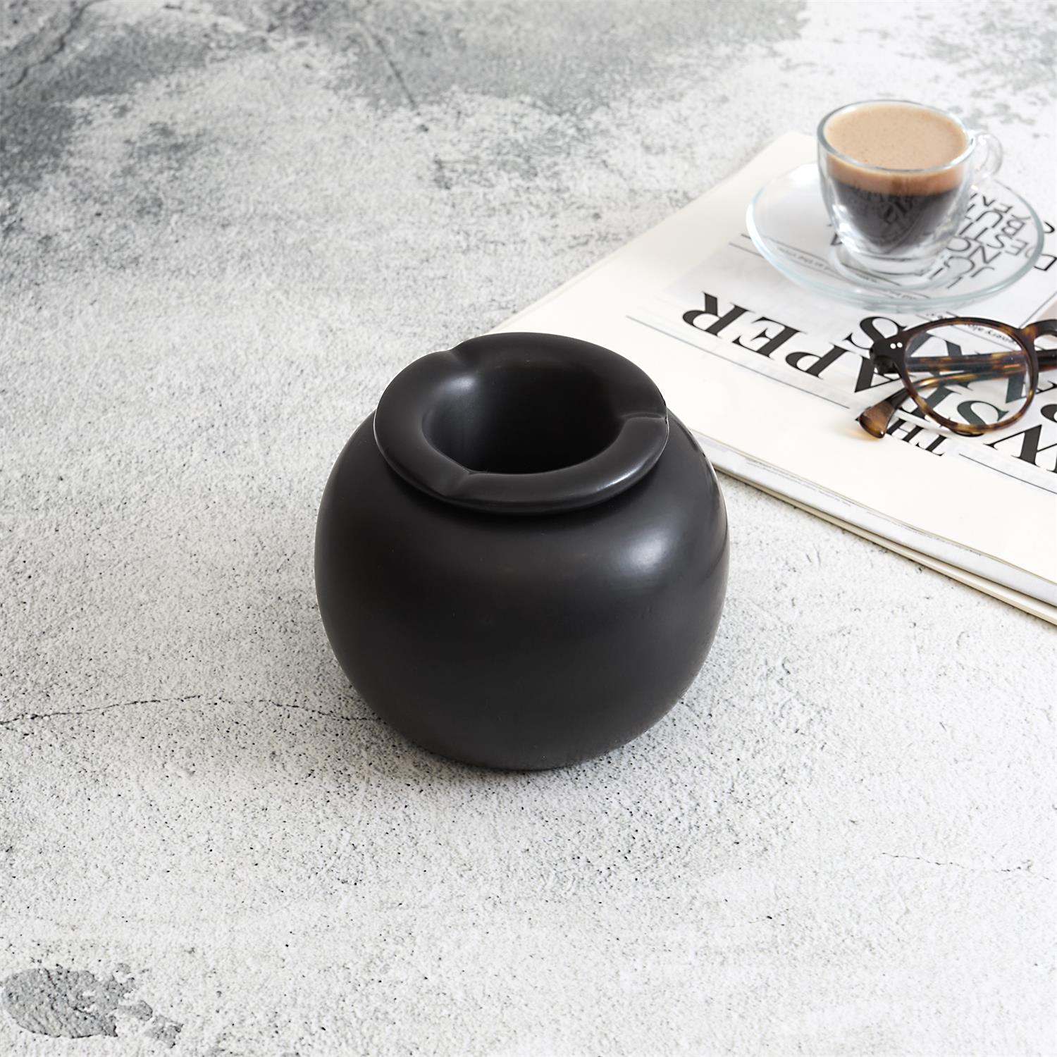 Avec sa silhouette douce et arrondie, ce cendrier en céramique noire s’impose par un design sobre et contemporain. Sa finition mate apporte une touche élégante et discrète, idéale pour les intérieurs aux lignes épurées.