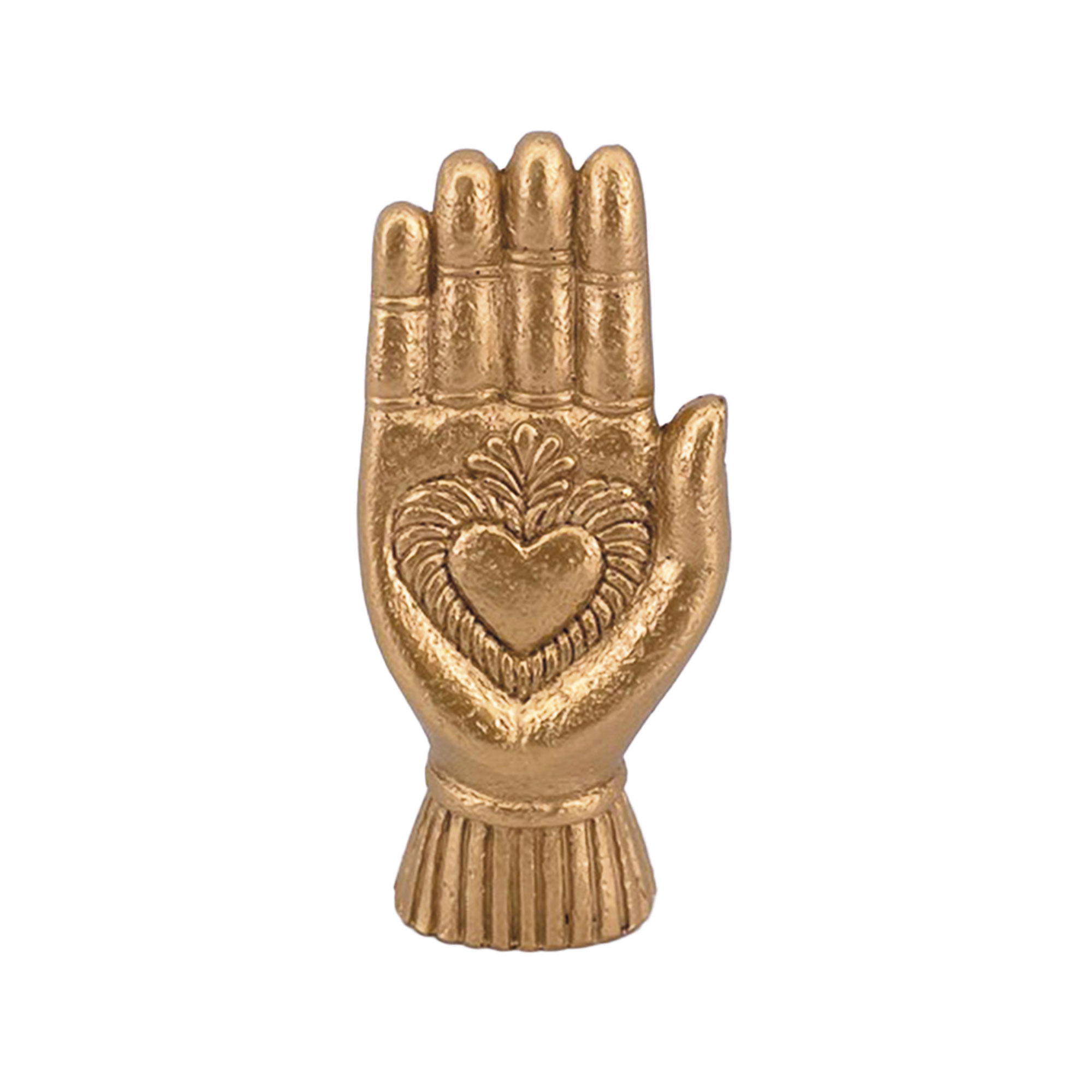 Cet ex-voto décoratif en forme de main sacrée attire le regard par sa silhouette sculptée et son cœur central délicatement travaillé. Inspiré de l’iconographie symbolique, il évoque la protection, l’attention et le lien intime avec l’objet décoratif.