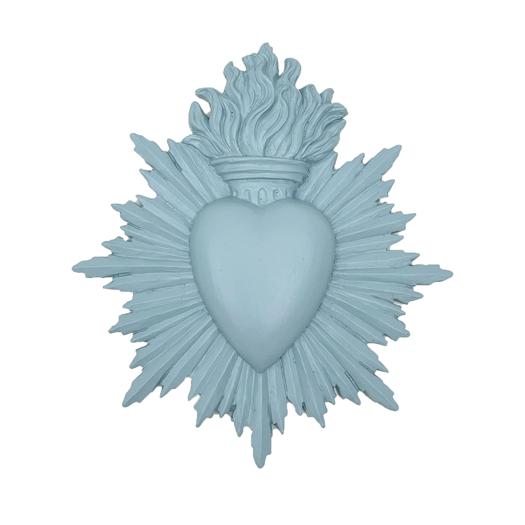 Inspirée des ex-voto traditionnels, cette décoration murale en forme de cœur apporte une touche symbolique et décorative à vos murs. Son relief travaillé et ses lignes rayonnantes en font une pièce forte, facile à intégrer dans différents univers.