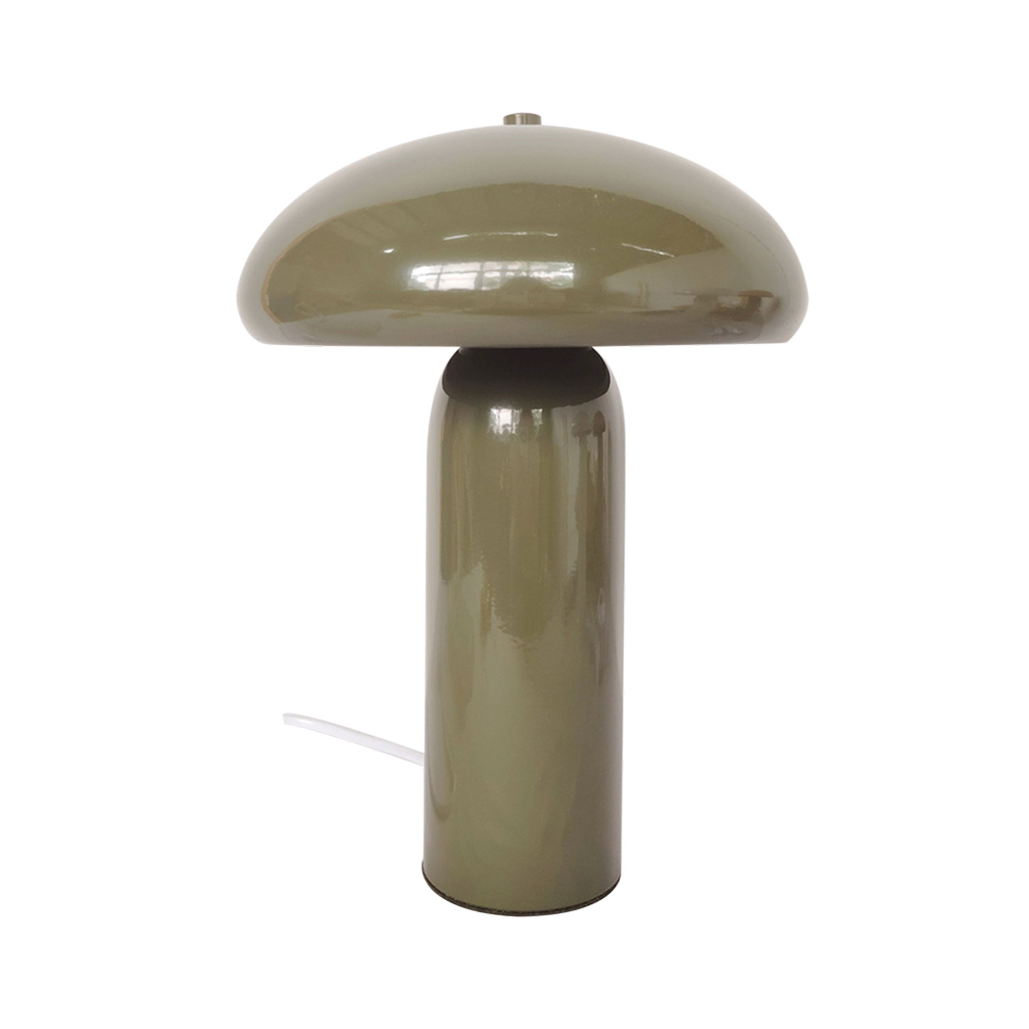 Cette lampe à poser en métal kaki se distingue par sa silhouette équilibrée et son fini brillant, qui capte subtilement la lumière sans en faire trop. Sa forme évoque un design intemporel, facile à intégrer dans un intérieur contemporain comme dans une ambiance plus vintage.