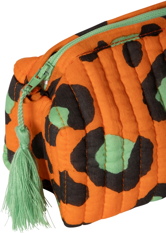 Cette pochette en tissu orange imprimé léopard vert est un véritable concentré d’énergie et d’originalité. Son textile matelassé lui apporte du volume et un toucher agréable, tandis que son motif léopard revisité mêlant vert pastel et noir crée un contraste audacieux et ultra tendance.
