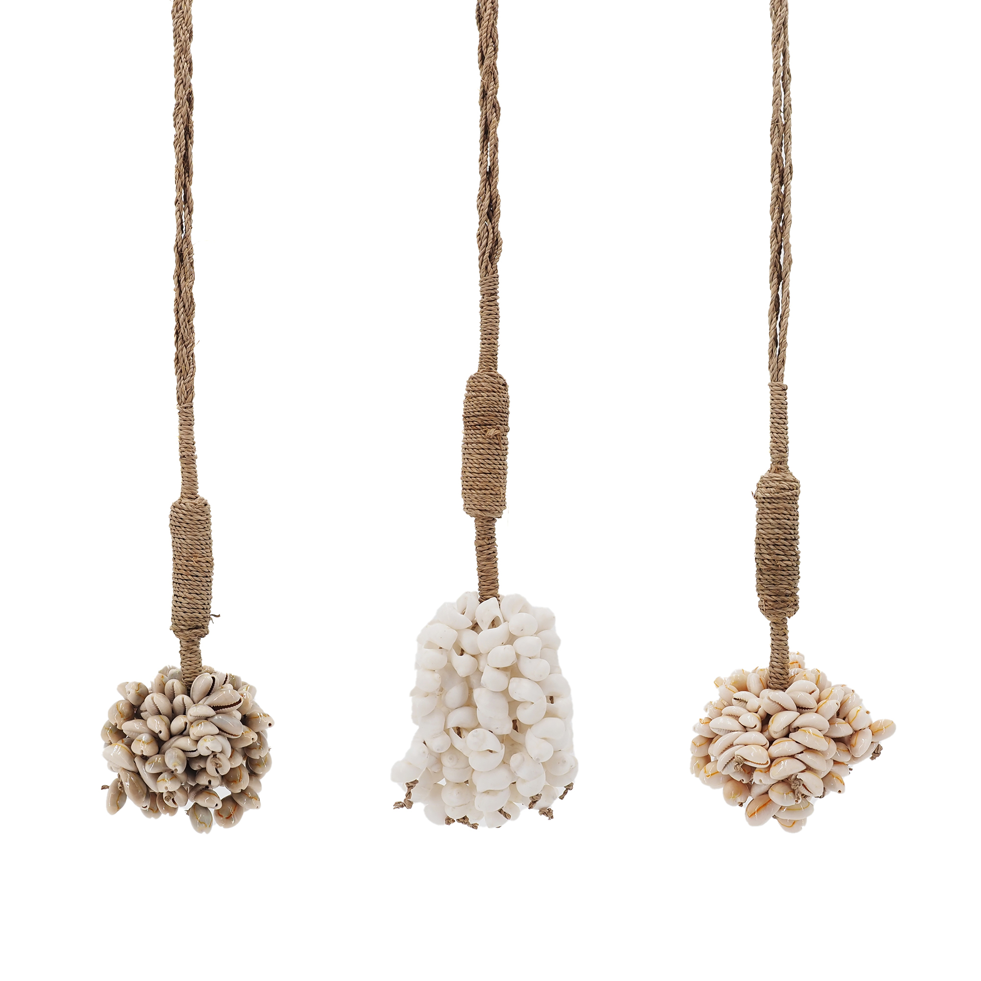 Composée de véritables coquillages assemblés à la main et montée sur une corde en fibres naturelles, chaque pièce révèle un charme unique. Les nuances délicates des coquillages, leurs formes organiques et le travail artisanal confèrent à cette embrasse un caractère authentique.